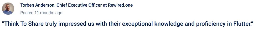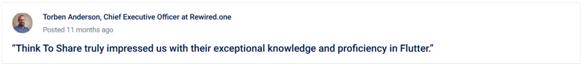 📢 "Think To Share truly impressed us with their exceptional knowledge and proficiency in Flutter."